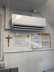 The project began with a site survey to assess room dimensions, insulation, and electrical capacity. A suitable Fujitsu system was selected to match the cooling load requirements. Installation areas were marked to ensure optimal airflow and minimal disruption to acoustics. Electrical isolation procedures were followed before any work commenced to eliminate risk of electric shock. Mounting brackets were securely fixed, ensuring structural integrity and compliance with building regulations. Refrigerant pipework and drainage systems were installed carefully to prevent leaks and condensation issues. Engineers used appropriate personal protective equipment (PPE), including gloves and eye protection, throughout the process. The indoor unit was positioned to distribute air evenly without creating noise interference, critical in a music environment. Outdoor units were installed in a well-ventilated area with safe clearance. System pressure testing and vacuuming were conducted to ensure there were no leaks and that the system operated efficiently. Electrical connections were double-checked for safety and compliance. Finally, the system was commissioned, and performance tests were carried out. Staff were given guidance on safe operation and maintenance, ensuring long-term reliability and user safety.