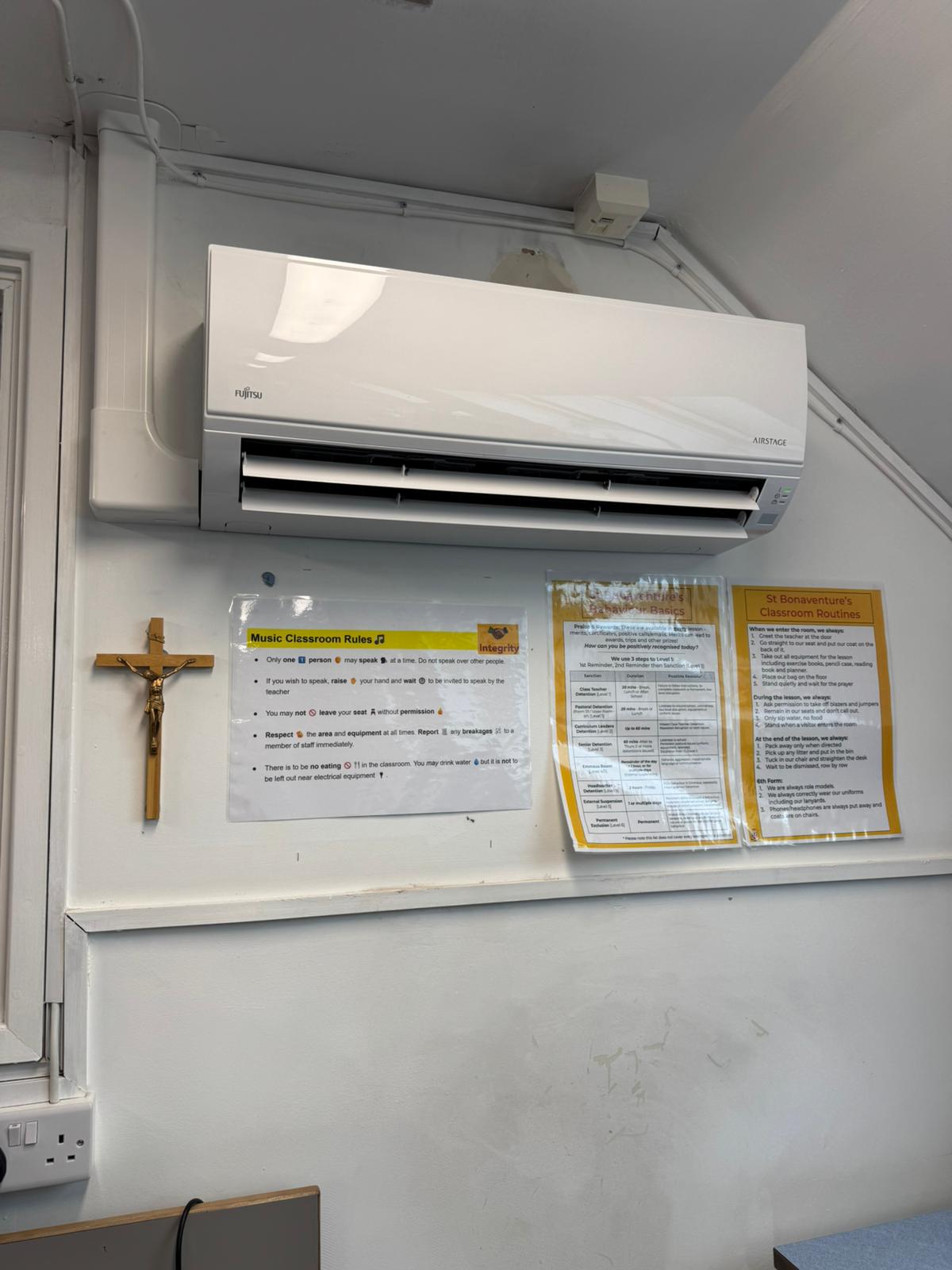 The school’s music room suffered from poor temperature control, leading to an uncomfortable environment for both students and staff. During warmer months, the room would overheat due to occupancy levels and heat generated by instruments and equipment. This not only affected concentration and performance quality but also posed a risk to sensitive musical instruments that require stable temperature and humidity conditions. Additionally, existing ventilation was inadequate, resulting in stale air and reduced air quality.