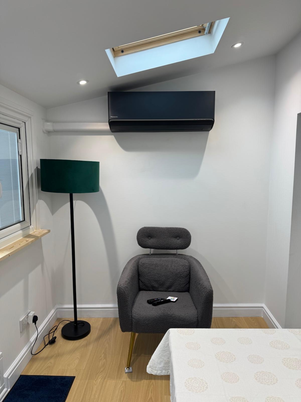 Essex Cooling Ltd completed an air conditioning installation for this newly built extension designed as a private treatment room. The space required reliable cooling for warmer months and efficient heating during winter to ensure year round comfort for clients. We installed a modern Panasonic Etherea wall mounted split system that provides quiet operation, precise temperature control, and consistent airflow, creating an ideal environment for a wide range of treatments. The result is a comfortable, welcoming space that supports both client wellbeing and energy efficiency throughout the year.